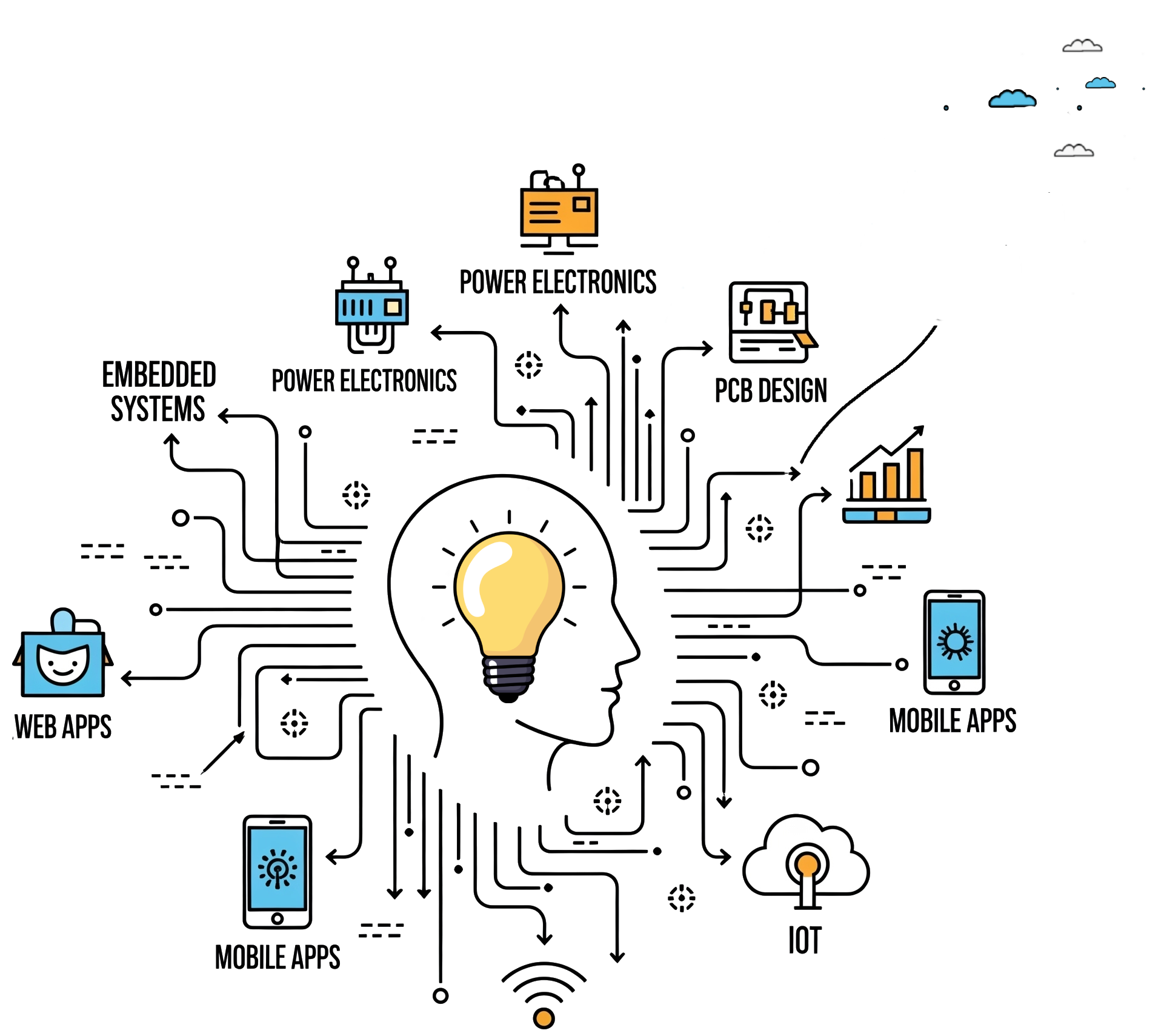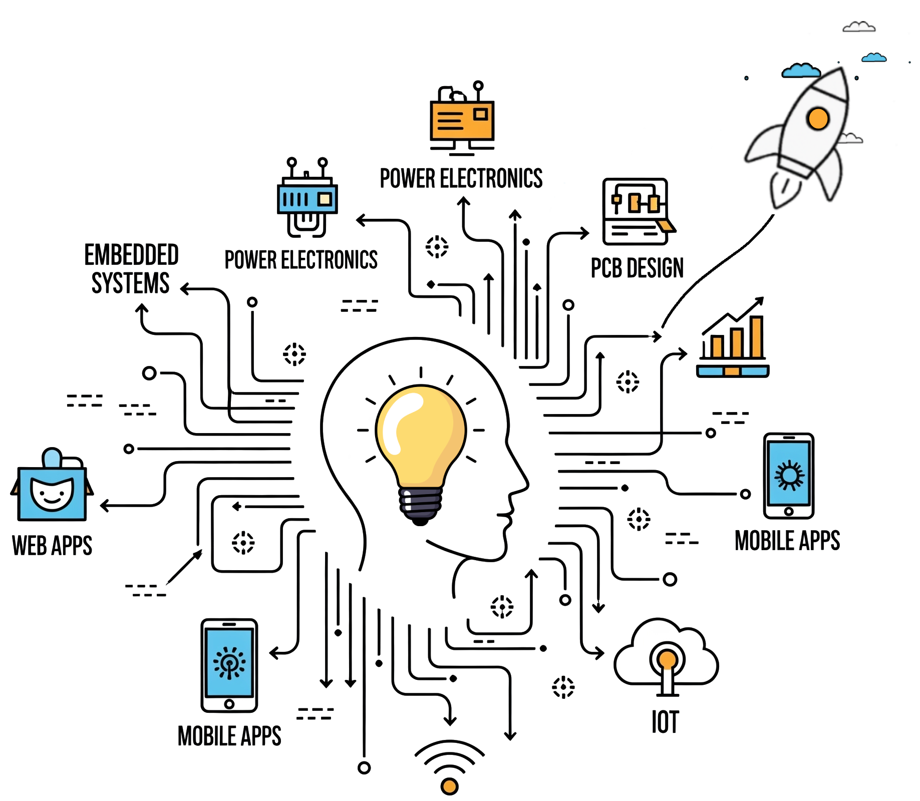 We transform your bold ideas into innovative, future-ready products. We bring your vision to life through end-to-end development services spanning concept design, prototyping, engineering, and deployment. Whether it's a digital product, embedded system, or a complete IoT solution, we turn complex ideas into market-ready innovations.